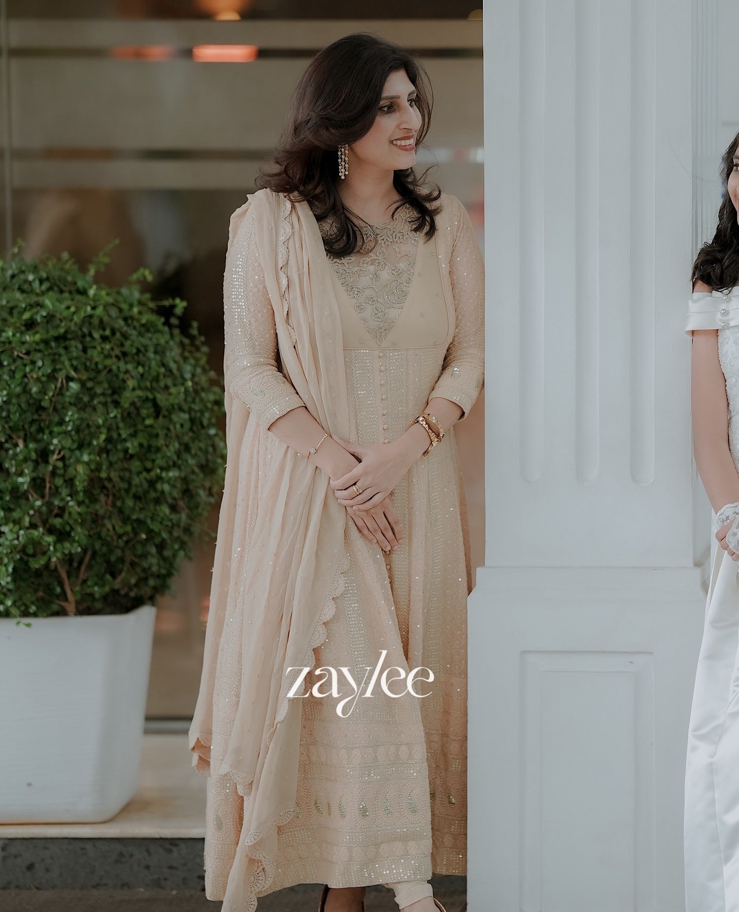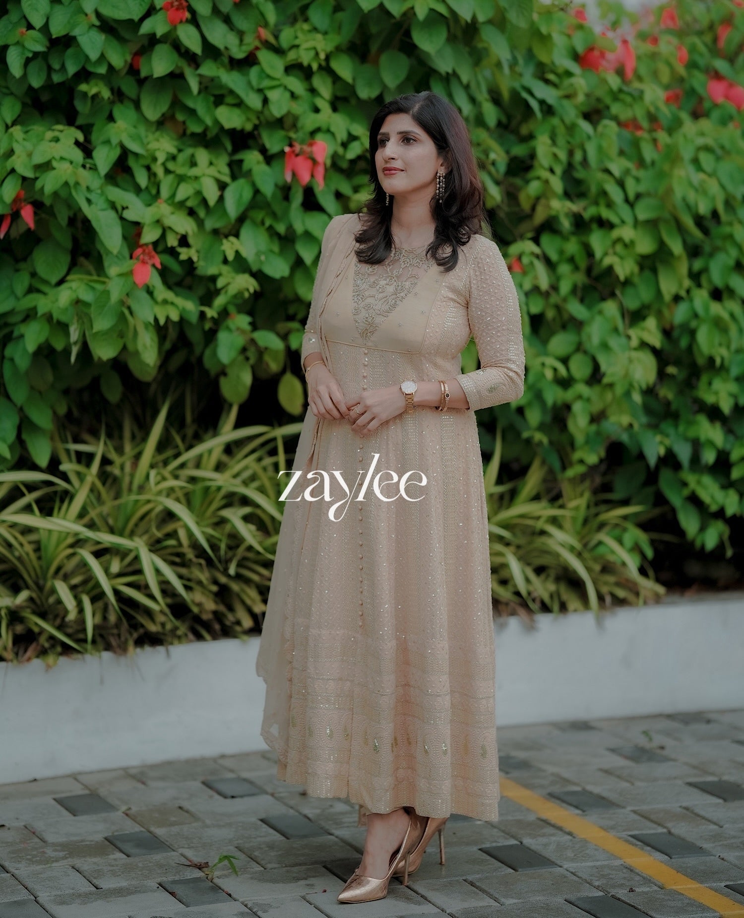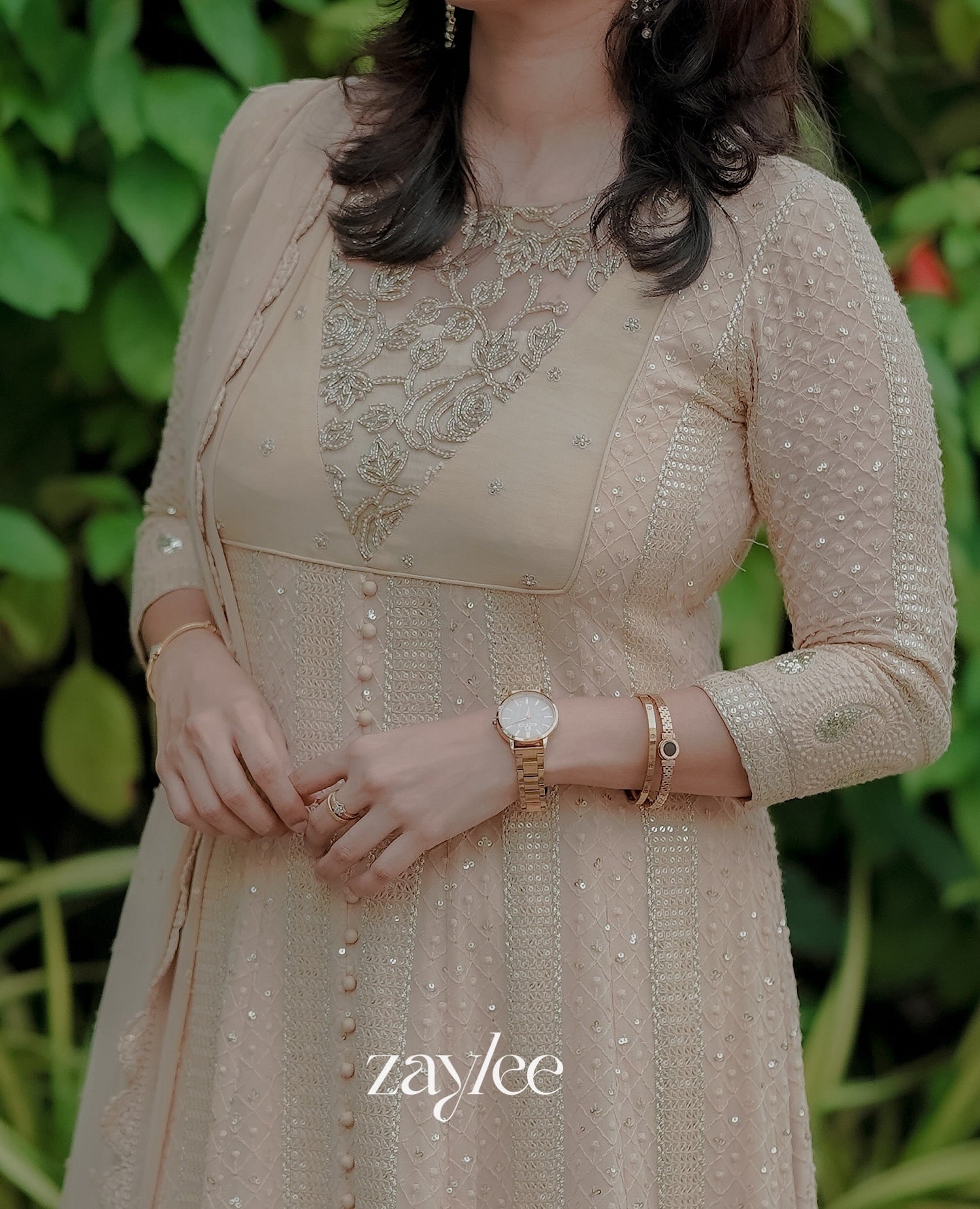 Beige Chikankari Anarkali With Highlights
