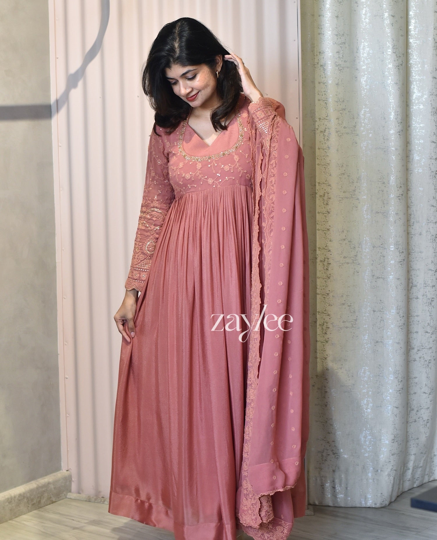 Brick Rose Anarkali