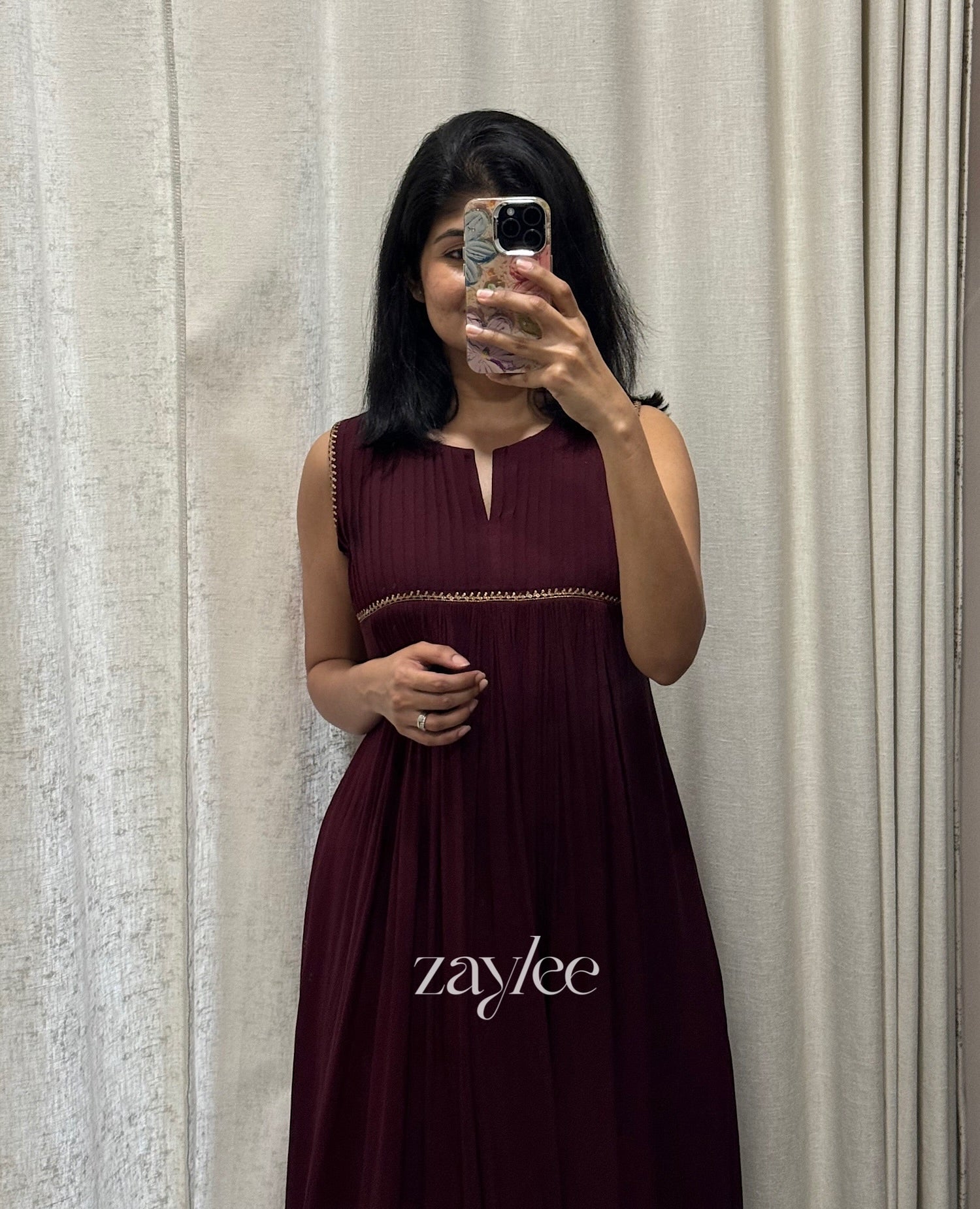 Deep Mahogany Pleated Yoke Kurta