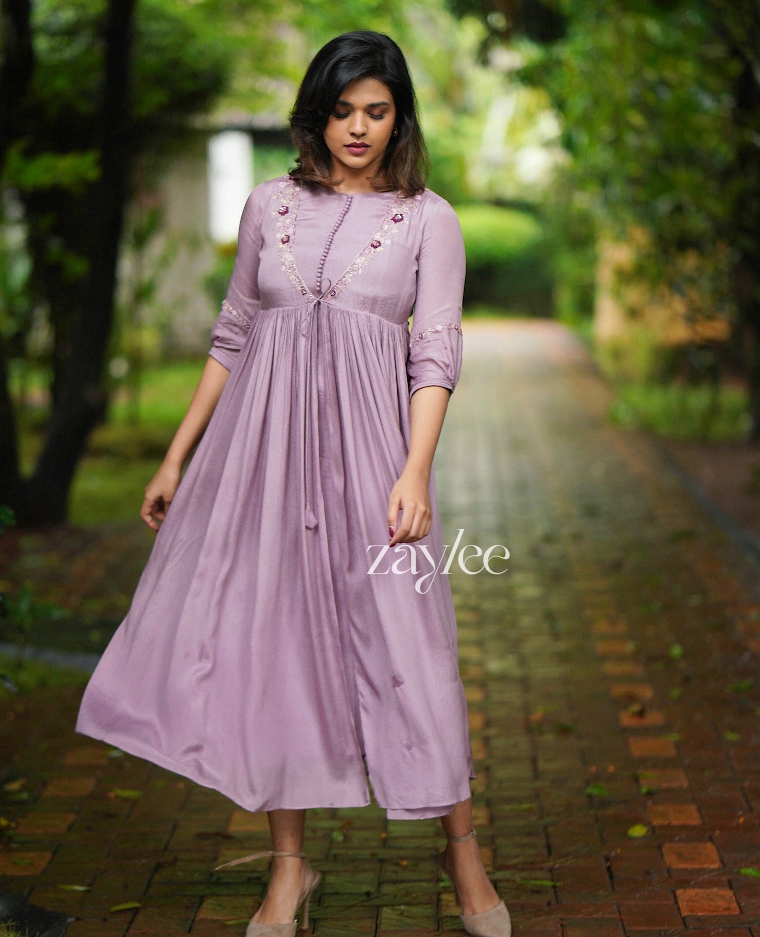 French Lilac Gathered Kurta