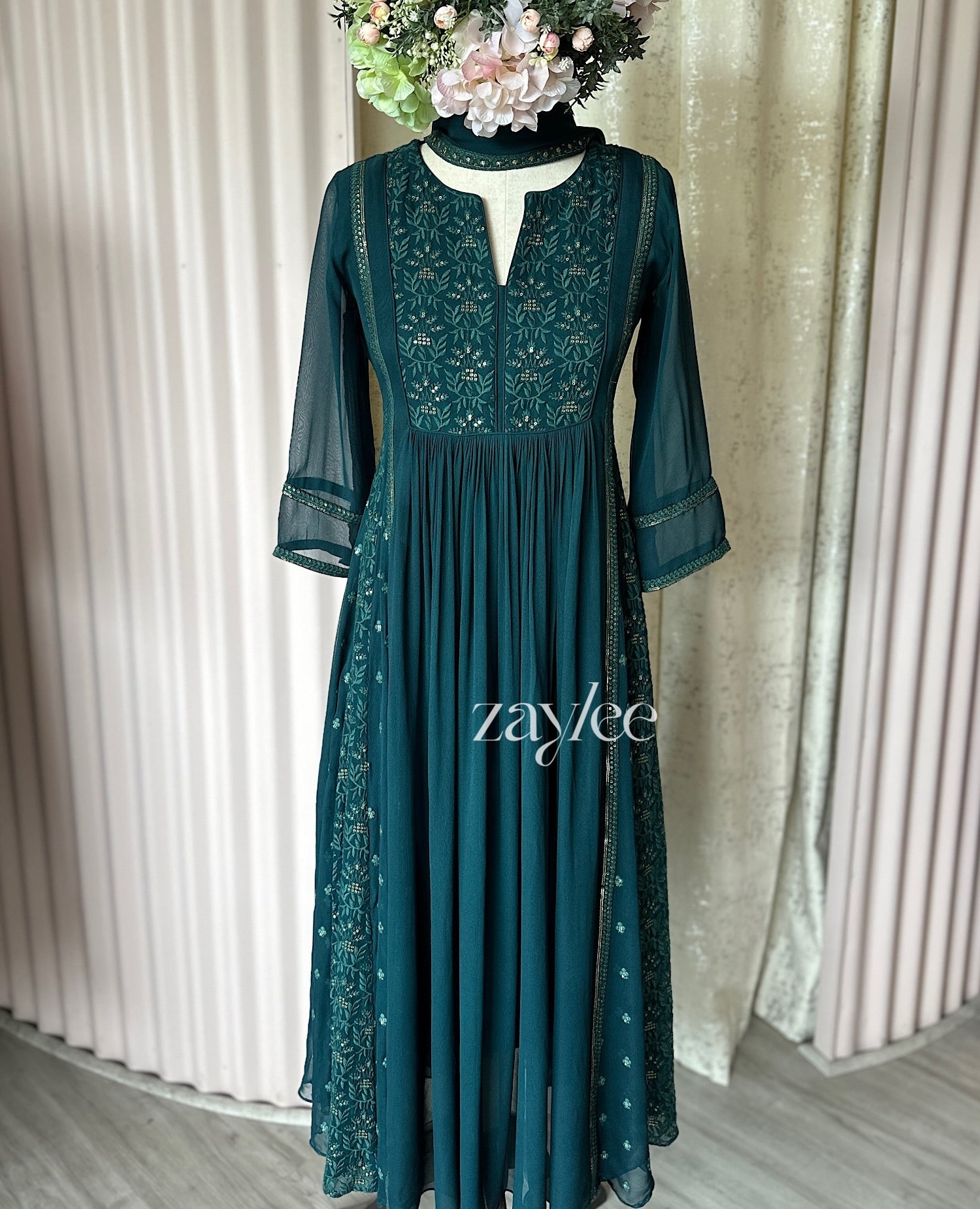 Deep Green Side Panelled Embroidered Kurta