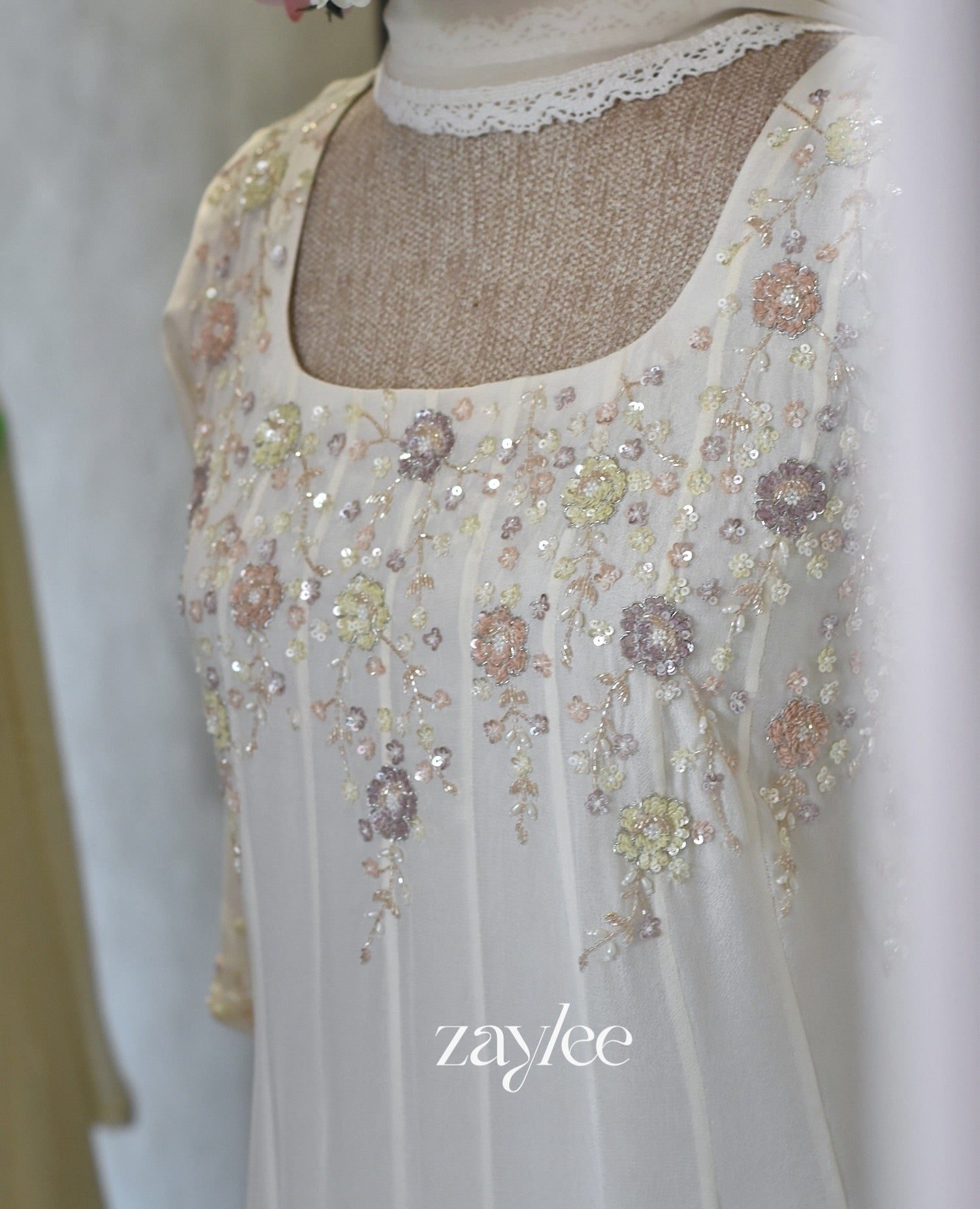 Off White Panel Anarkali with pastel embellishments