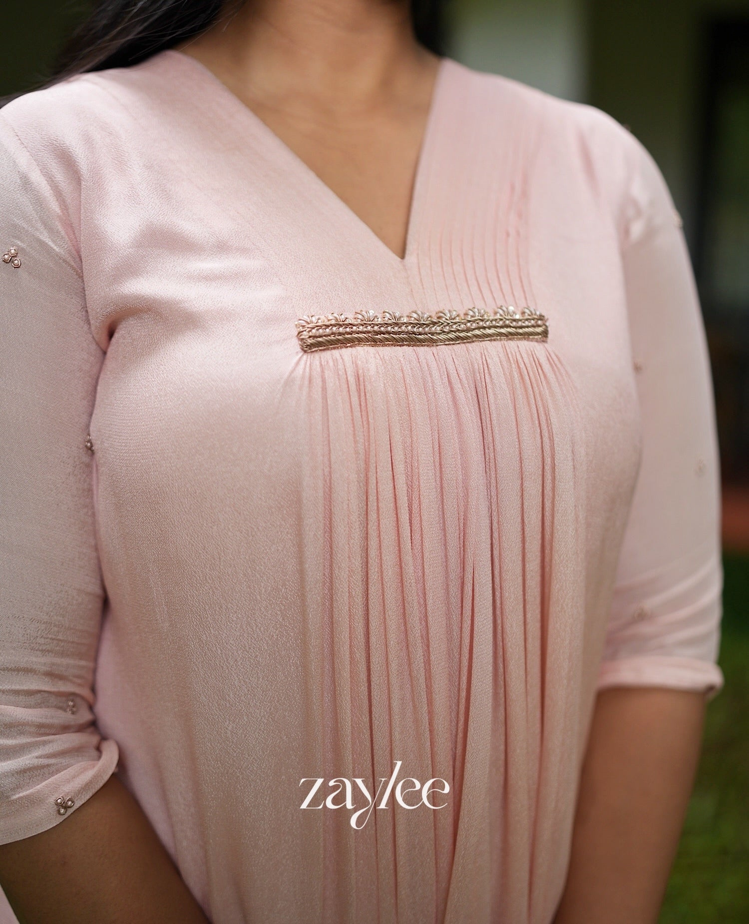Peach Pink Pleated Kurta